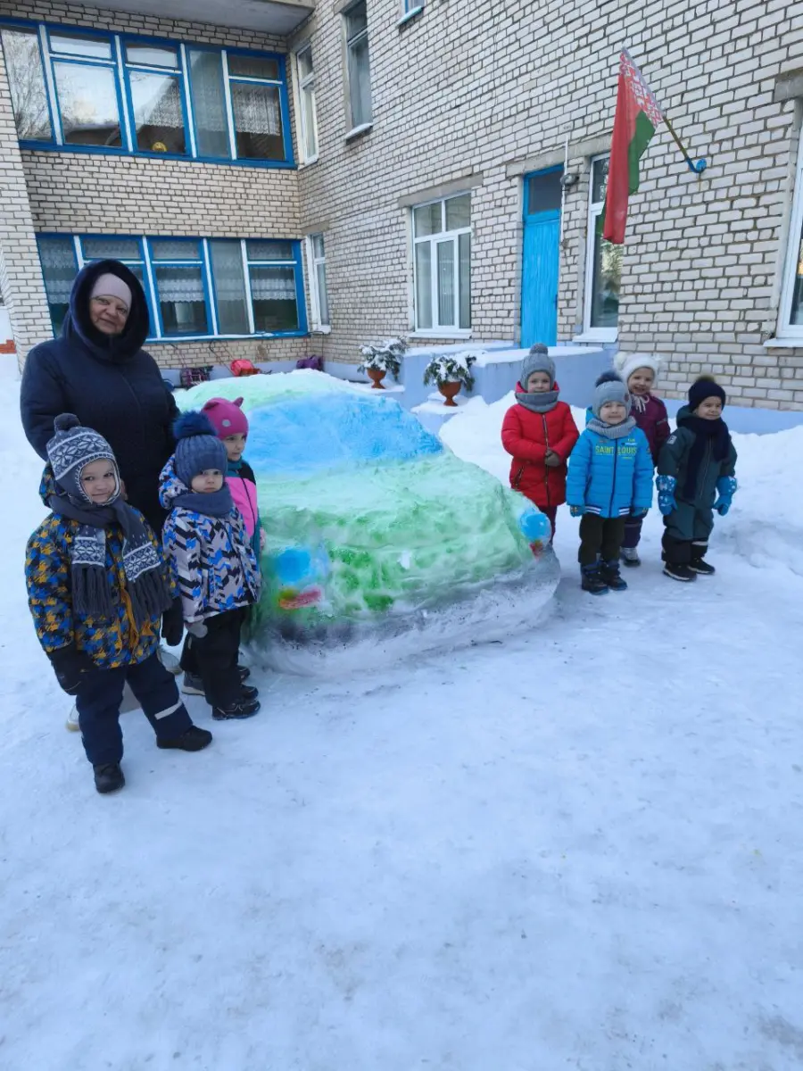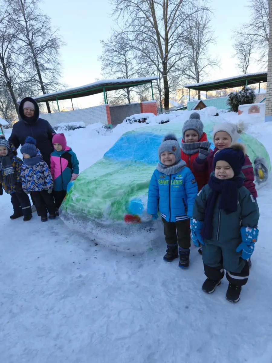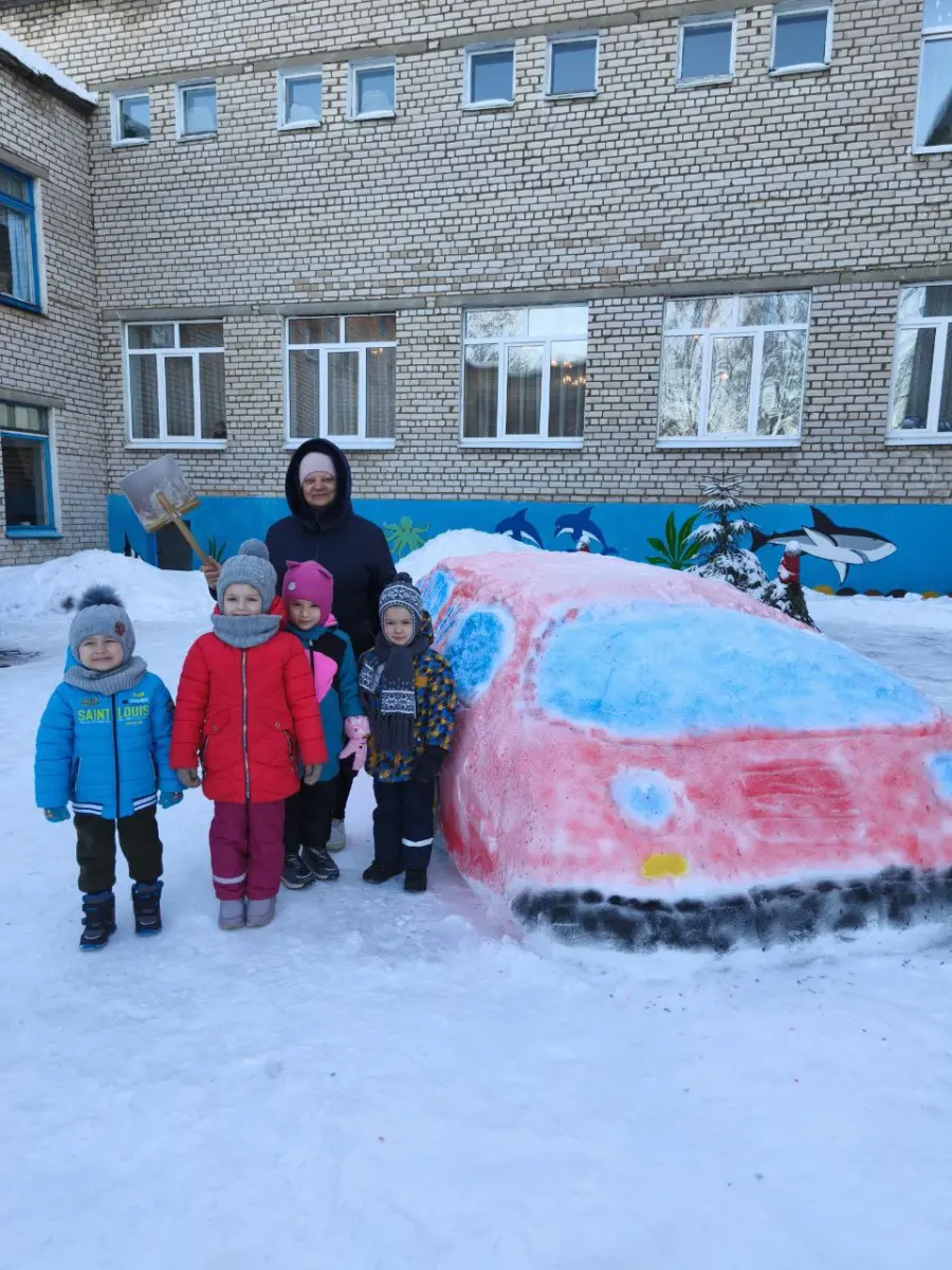 В нашем детском саду работает настоящий снежный скульптор - кастелянша Светлана Евгеньевна Солодовникова. Она превратила непослушный снег в машины, чем порадовала не только детей, но и всех взрослых.